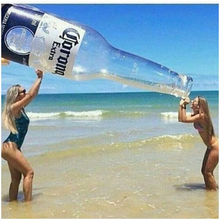 Beach days have a way of lowering expectations and raising creativity. The setup gives off that confidence that says, “Yeah, this makes sense right now.” One person commits to holding the world’s most ambitious refreshment, while the other steps in like this, which is a totally reasonable way to cool off.