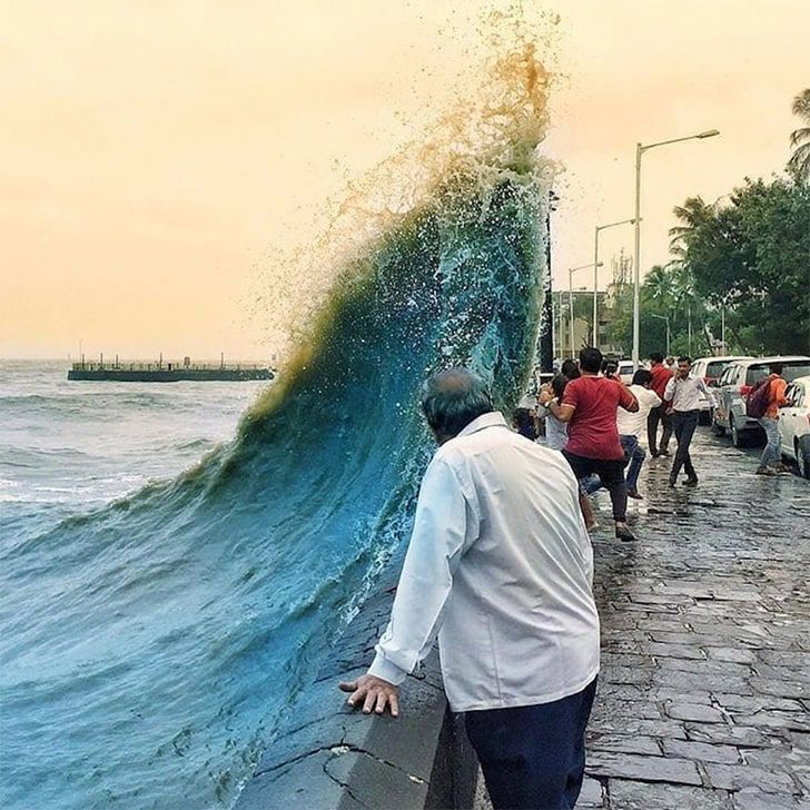 His posture says calm confidence, the kind that makes chaos look awkward. It’s the visual version of staying logged in while the system crashes around you. That contrast is why this image took on a second life as a meme. The wave becomes the incoming mess nobody wants, and the crowd reacts exactly how you’d expect.