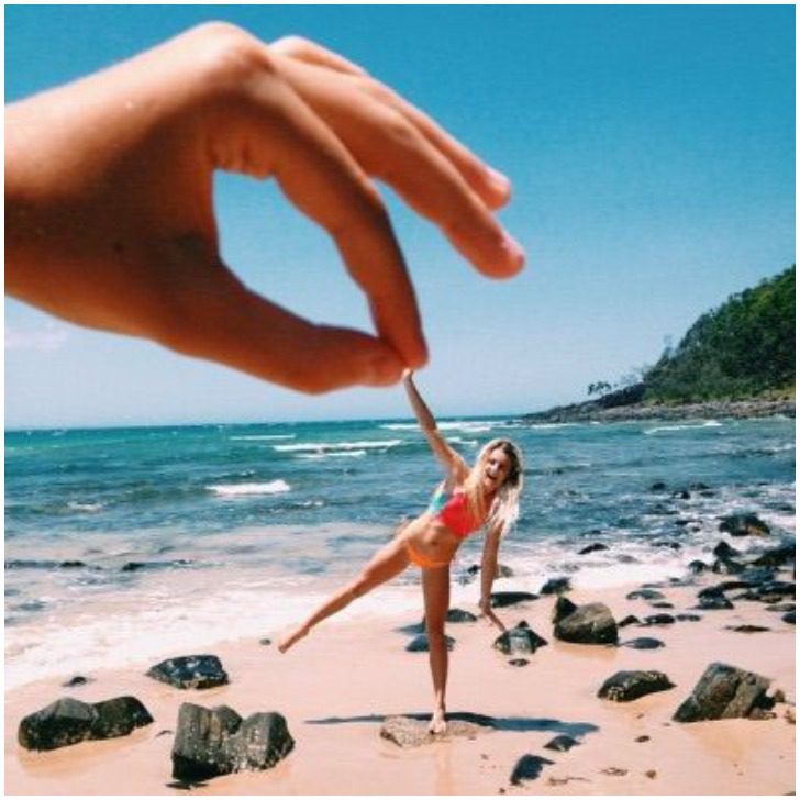 The ocean behind her is less like a backdrop and more like a potential drop zone, which adds to the mild sense of panic baked into the illusion. Then the logic kicks in, and the fun starts. This took patience, timing, and a lot of laughing between failed attempts. The spacing had to be perfect, the fingers steady, the pose held just long enough.
