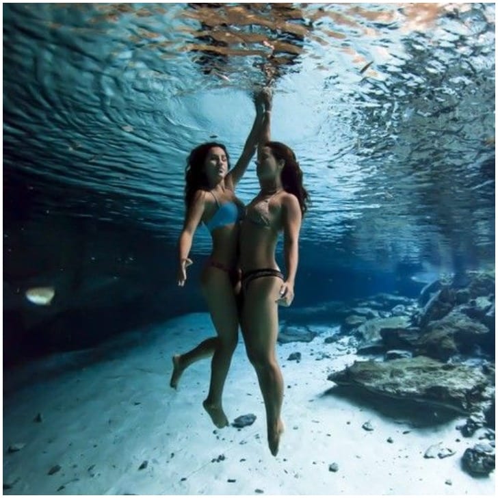 People think everything interesting happens above the surface, but this moment says otherwise. It’s like these two drifted down and decided to pause for a quick photo shoot without telling anyone. The pose looks calm and practiced, like this was planned over a laugh before slipping under.