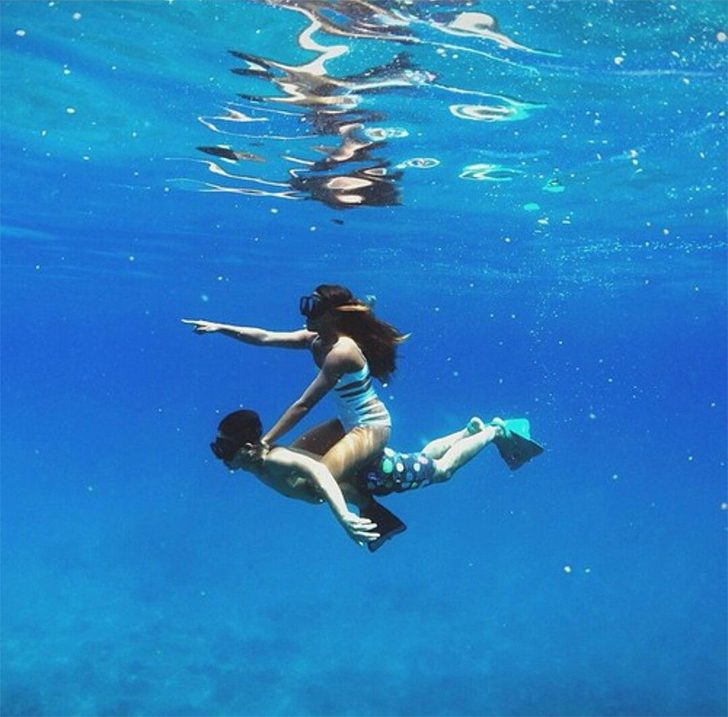 People like to imagine the ocean as calm and predictable, but this moment suggests otherwise. Instead of fish or coral, the scene is like a casual agreement made mid-swim. One person handles all the effort while the other settles in, as if this were the plan all along.