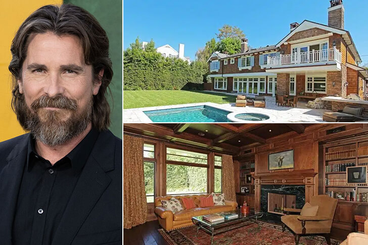 Tucked behind the trees of Brentwood Park is a £7 million mansion that looks like it was designed for someone who knows how to disappear into character. Christian Bale bought the 8,000-square-foot estate in 2017, complete with six bedrooms, eight bathrooms, a private library, a cinema, and a home gym. Every corner feels like it’s built for comfort, from the wood-panelled study to the glowing fireplace.