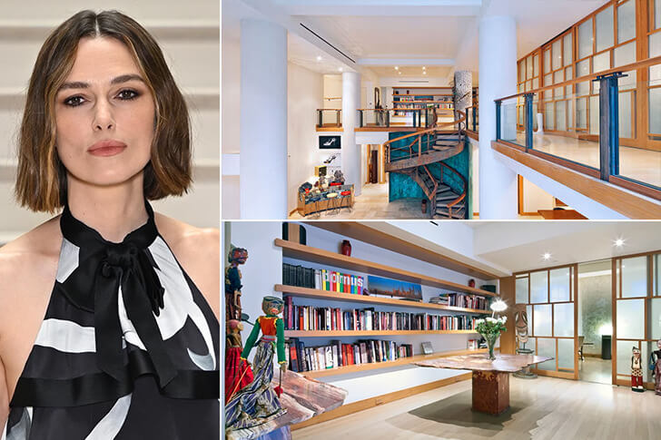 Soaring 23-foot ceilings, a mahogany spiral staircase, and sliding Japanese doors made this Tribeca loft feel more like an art gallery than an apartment. In 2015, Keira Knightley rented the two-storey space for around £36K a month, scoring three bedrooms, 2.5 baths, and a private terrace with heated limestone floors.